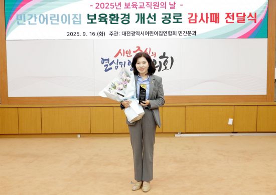 대전광역시의회 이금선 교육위원장(국민의힘, 유성구4)이16일 민간 어린이집 보육환경 개선과 보육 교직원 권익 증진에 기여한 공로로 감사패를 받았다.