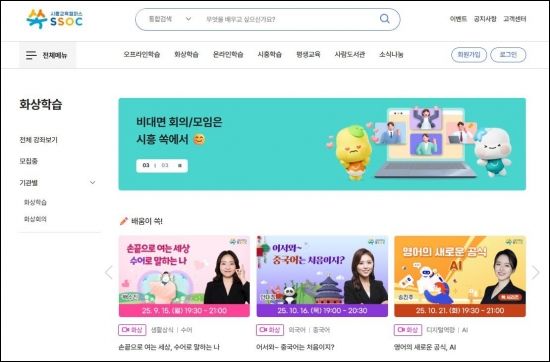 '시흥교육캠퍼스 쏙'이 운영 중인 AI 화상학습 시리즈는 매회 300여 명이 실시간으로 참여할 정도로 인기다. 스피치, 노션, 책쓰기 등 전문 분야 화상 강좌 역시 꾸준한 인기를 끌고 있다.