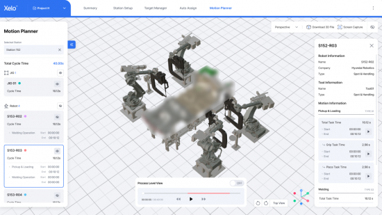 로아이의 AI 플랫폼 '셀로(XELO)'는 공장에 배치된 제조 로봇의 움직임과 배치를 최적화할 수 있도록 계산해 준다. 완성차 공장 생산 라인에 신차가 배정돼 새로운 공정을 설계해야 할 때 셀로는 로봇 팔을 몇 대 설치해야 하는지, 간격은 어느 정도가 적당한지, 기존의 구조물이나 로봇과 충돌하지 않는 방향과 움직임의 순서 등을 계산한다.