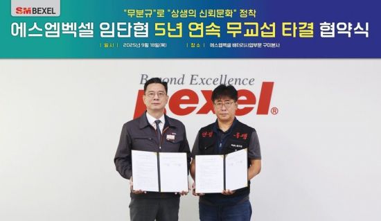 SM벡셀 배터리사업부문은 2021년부터 매년 임단협을 무교섭으로 타결했다. SM그룹은 이를 계기로 노사가 상호보완적인 동반자 관계로 발전해 지속가능한 성장과 다양한 가치를 창출해 나갈 것으로 기대하고 있다.
