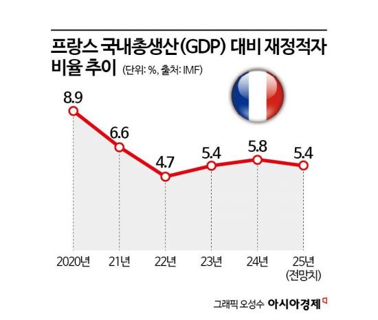 프랑스의 재정적자는 지난해 기준 국내총생산(GDP)의 5.8%로 유로존(유로화 사용 20개국) 평균(약 3.1%)을 크게 웃돌았다. 국가부채는 GDP의 113%를 넘어 유로존에서 그리스, 이탈리아에 이어 세 번째로 높은 수준이다. 재정 적자가 눈덩이처럼 불어난 이유는 코로나19 팬데믹(세계적 대유행)과 2022년 러시아의 우크라이나 침공 이후 에너지 위기 대응을 위해 막대한 보조금을 쏟아부었기 때문이다. 동시에 글로벌 금리 상승으로 이자 비용이 많이 늘어난 것도 영향을 줬다.