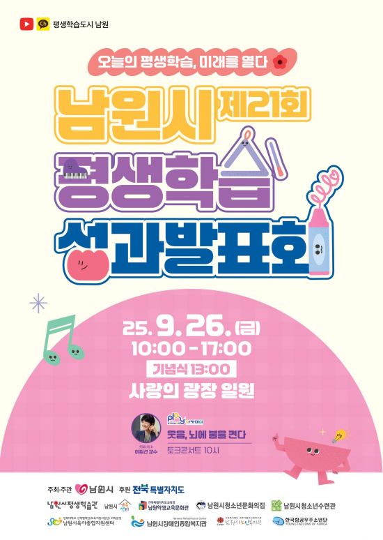 전북 남원시가 오는 26일 사랑의 광장에서 '오늘의 평생학습, 미래를 열다'를 주제로 제21회 남원시 평생학습 성과발표회를 개최한다.