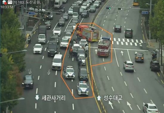 사고 처리 작업으로 언주로 성수대교남단교차로에서 도산공원교차로 양방향 교통이 부분적으로 통제 중이다.