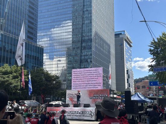 이주노동자들도 현장 발언을 통해 폭행과 차별이 이뤄지는 근무 환경 등을 문제 삼으며 권리 보장을 요구했다.