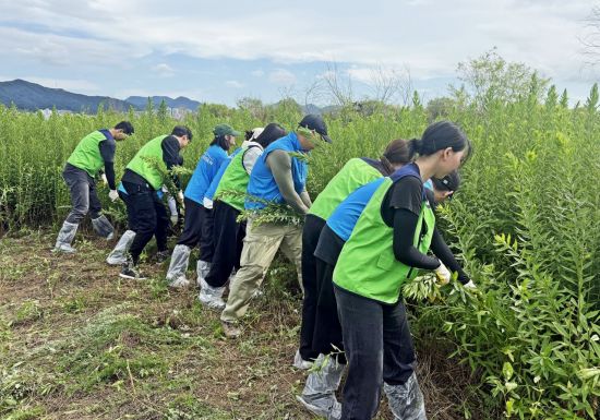 지난 19일 부산 강서구 대저생태공원 낙동강 유역 일대에서 진행된 이번 활동에는 에어부산과 진에어 임직원 30여명이 참여해 약 2시간 동안 생태교란종 '양미역취'를 뿌리째 제거했다.