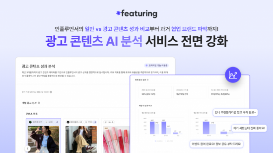 피처링의 광고 콘텐츠 분석 서비스는 인플루언서가 최근 3개월간 게시한 광고 콘텐츠를 AI가 자동 수집·분석해 광고주에게 주요 지표를 제공한다. 인플루언서의 광고 영향력 파악과 캠페인 기획 단계에서 전략적 의사결정을 돕는 기능을 한다.