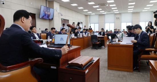 22일 국회에서 열린 행정안전위원회 전체회의에서 신정훈 위원장이 의사봉을 두드리고 있다.