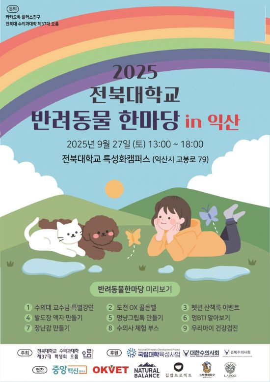 전북 익산시는 오는 27일 오후 1시 전북대 익산특성화캠퍼스에서 '2025 전북대학교 반려동물 한마당' 행사를 연다고 22일 밝혔다.