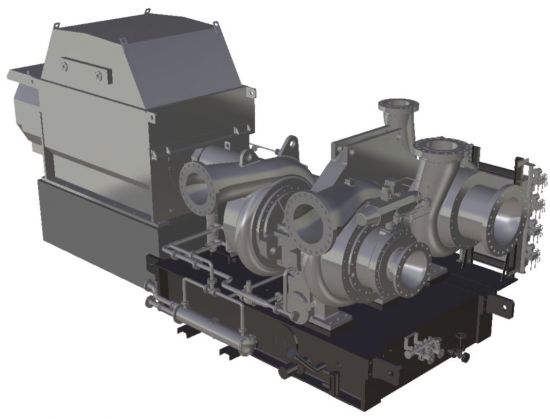 한화파워시스템은 삼성중공업과 액화공정시스템 '센스(SENSE)' 전용 액화 장비인 '기어식 컴팬더' 공동개발 협약을 체결했다고 23일 밝혔다. 사진은 개발 중인 컴팬더 모습으로, 개발 후 모습은 달라질 수 있다. 한화파워시스템