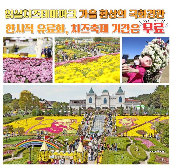 전북 임실군이 내달 1일부터 11월 9일까지 국화 개화 및 전시 기간에 맞춰 임실치즈테마파크 입장료를 한시적으로 징수한다.