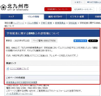 문제가 된 허위정보는 아프가니스탄 출신의 무슬림 여성의 청원과 관련돼 있다. 이 여성은 종교적 금기(豚肉·돼지고기 등)를 제외한 급식을 무슬림 초등학생 자녀에게 제공해 달라는 청원을 시의회 교육문화위원회에 제출했고, 그것이 채택(가결)됐다는 내용이 온라인에 퍼졌다. 그리고 이 청원을 근거로 기타큐슈시에서 무슬림 대응 급식이 제공되게 됐다는 식의 주장으로 확산했다. 하지만 이 여성의 청원은 2023년 6월에 접수돼 같은 해 8월에 심의된 뒤 계속 심의 상태로 보류돼 있다. 이후 2025년 2월 시의회가 개편되면서 자동 폐안 처리됐고 시의회에서 채택된 사실은 없었다.