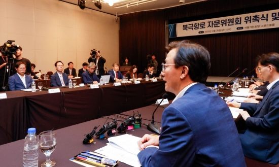 전재수 해양수산부 장관이 26일 서울 마포구 가든호텔에서 열린 '북극항로 자문위원회 위촉식 및 제1차 회의'에 참석해 모두발언 하고 있다.