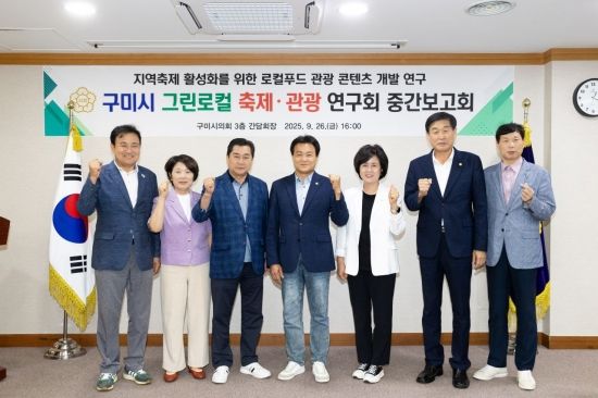 구미시의회 의원 연구단체 '구미 그린 로컬 축제·관광 연구회'(대표의원 김영태)는 지난 26일 구미시의회 3층 간담회장에서 '로컬푸드 활용 축제콘텐츠 개발을 통한 관광 활성화 방안 연구' 용역 중간보고회를 개최했다.