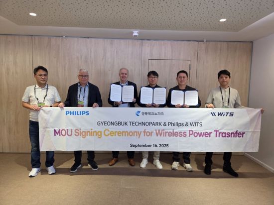 (재)경북테크노파크(원장 하인성, 경북TP)가 최근 무선전력전송 산업의 활성화를 위해 Philips, ㈜위츠와 업무협약(MOU)을 체결했다고 30일 밝혔다.