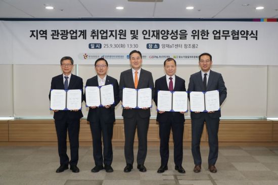 한국관광공사는 강원특별자치도경제진흥원, 충청북도기업진흥원, 충남경제진흥원, 전라남도중소기업일자리경제진흥원과 30일 서울 aT센터에서 지역 관광업계 취업지원 및 인재양성을 위한 업무협약을 체결했다고 밝혔다.