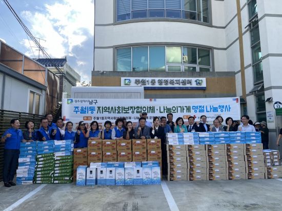광주 남구 주월1동 지사협, 추석 맞이 희망 물품 전달 광주 남구 주월1동 지역사회보장협의체와 나눔의 가게 운영위원회가 추석 명절을 맞아 900만원 상당의 물품 나눔행사를 진행했다. 광주 남구 지역사회보장협의체 제공