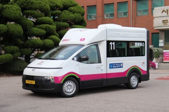 2일 업계에 따르면 충남 서산시는 전국 최초로 DRT 전용 친환경 전기 승합차 'CV1 셔틀'을 도입했다. 서산시는 지난 2월 현대차 인공지능(AI) 기반 DRT 플랫폼인 셔클을 활용한 '행복버스'를 개통, 최근 이용자 증가에 따라 기존 카운티 일렉트릭 8대에 더해 CV1 셔틀 4대를 새롭게 도입한 것이다.