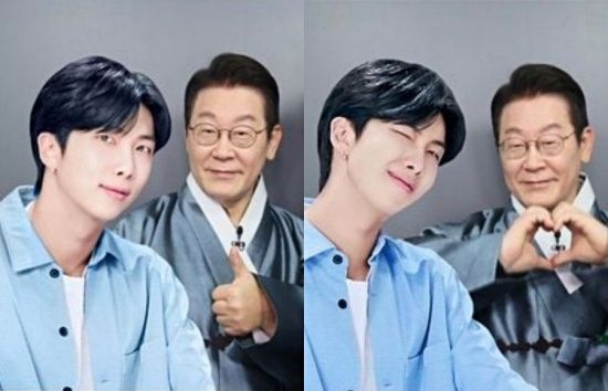 이재명 대통령이 방탄소년단(BTS) 멤버 RM과 함께 촬영한 듯한 네 컷 사진을 공개해 눈길을 끌었다. 실제로는 RM 얼굴이 삽입된 프레임을 활용한 사진으로, 이를 본 RM은 "합성이냐"며 놀라움을 드러냈다.