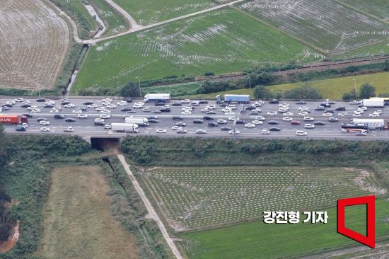 2023년 추석을 이틀 앞둔 9월 27일 상공에서 바라본 서해안고속도로 [항공촬영협조=서울경찰청 항공대, 조종사: 경위 신승호-경위 박지환, 승무원: 경위 박상진] 사진=강진형 기자aymsdream@