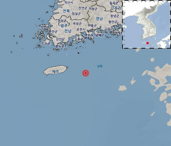 기상청에 따르면 이날 발생한 지진의 진앙은 북위 33.27도, 동경 127.54도다. 지진 발생 깊이는 19㎞다.