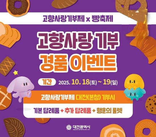 대전시가 오는 18일부터 19일까지 소제동 카페거리와 대동천 일원에서 열리는 '2025 대전 빵축제' 현장에서 대전고향사랑기부제 홍보관을 운영한다.