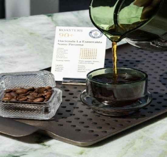 해당 커피는 파나마 '아시엔다 라 에스메랄다' 농장에서 재배된 게이샤 원두를 사용했다. 이는 세계에서 가장 희귀하고 고급스러운 원두 중 하나로 꼽힌다.