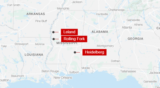 AP·CNN 등 주요 외신에 따르면 11일(현지시간) 자정을 전후해 미시시피주 북서부 릴랜드(Leland)와 동부 하이델버그(Heidelberg), 서부 롤링포크(Rolling Fork) 등 3개 소도시에서 거의 동시에 총격이 벌어졌다.
