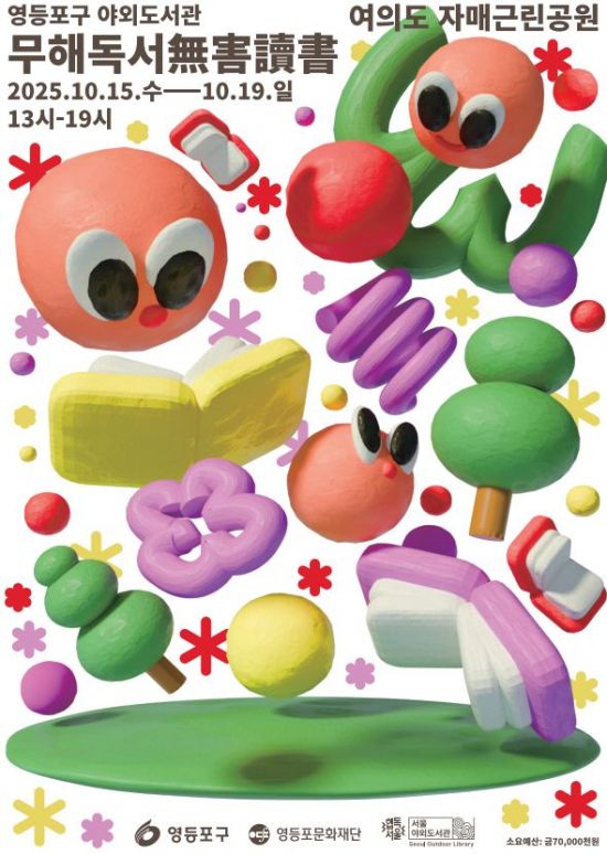 서울 영등포구(구청장 최호권)가 가을철 독서의 계절을 맞아 오는 15~19일 오후 1시부터 7시까지 여의도 자매근린공원에서 시민들이 자유롭게 책을 즐길 수 있는 ‘영등포구 야외도서관: 무해독서(無害讀書)’를 운영한다.