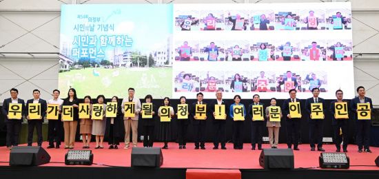 이어진 '시민과 함께하는 특별 퍼포먼스'에서는 김동근 시장을 비롯한 내빈들이 '우리가 더 사랑하게 될 의정부, 여러분이 주인공'이라는 문구가 적힌 피켓을 들고, 시민들과 함께 무대에 올라 하나 된 모습을 연출했다. 이 장면은 대형 화면을 통해 실시간으로 중계되며 현장을 감동으로 물들였다.