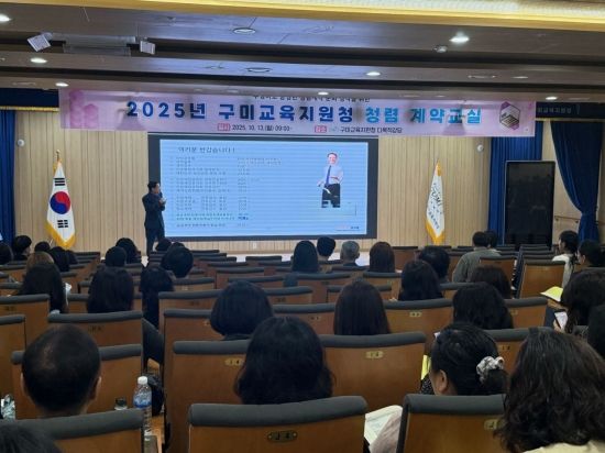 경북 구미교육지원청(교육장 민병도)은 13일 구미교육지원청 신청사 1층 다목적 강당에서 관내 학교 계약업무 담당자를 대상으로 '2025년 구미교육지원청 청렴 계약 교실' 연수를 실시했다.