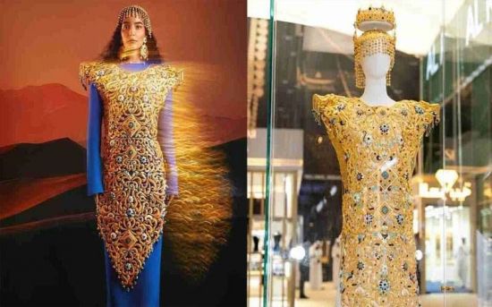 금으로 만든 드레스가 세계에서 가장 비싼 황금 드레스로 기네스 세계 기록에 올랐다. 지난 7일 기네스월드레코드는 사우디아라비아 리야드에 본사를 둔 귀금속 회사 '알 로마이잔 골드 앤 주얼리'(Al Romaizan Gold & Jewelry)가 제작한 드레스를 '세계에서 가장 비싼 황금 드레스'로 공식 인증했다고 밝혔다.
