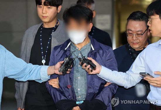 해양경찰관 고(故) 이재석(34) 경사의 순직 사건과 관련해 검찰의 수사를 받는 인천해양경찰서 영흥파출소 전 팀장 A 경위가 15일 인천지방법원에서 열린 구속 전 피의자 심문(영장실질심사)을 마친 뒤 법원을 나서고 있다. 연합뉴스
