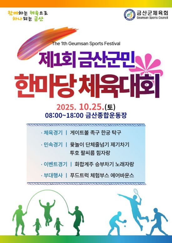 박범인 금산군수는 "이번 체육대회는 군민 모두가 함께 어울리며 웃고 즐기는 화합의 한마당이 될 것"이라며 "바쁜 일상에서 군민들이 잠시 쉬어가며 활력과 공동체 의식을 느낄 수 있는 뜻깊은 시간이 되길 바란다"고 말했다.