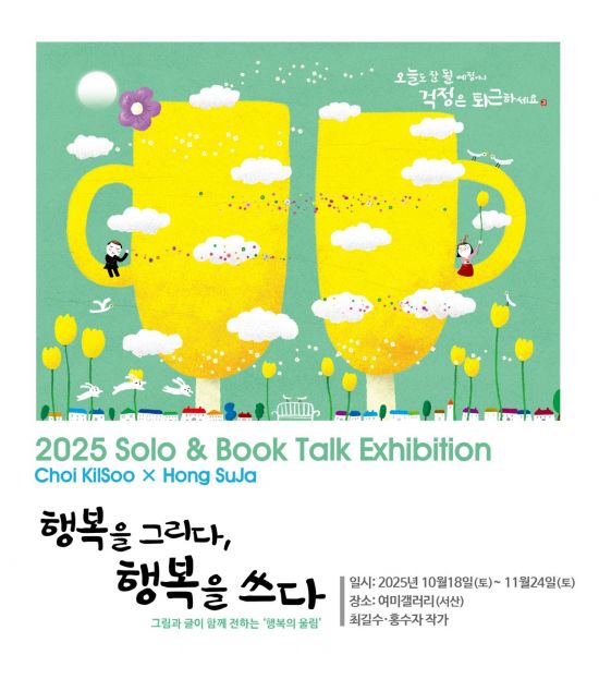 전시는 "그림과 글이 함께 전하는 행복의 울림"이란 콘셉트로 구성됐다. 전시장엔 최길수 작가의 그림과 홍수자 작가의 문장이 어우러진 작품들이 전시됐다. 관람객은 '보는 예술'과 '읽는 예술'을 동시에 체험할 수 있다. 미리 보는 2026년 희망과 행복의 메시지 달력 굿즈도 함께 전시한다. 전시는 오는 11월24일까지 이어진다.