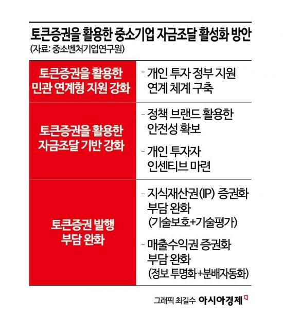 선용욱 중소벤처기업연구원 부연구위원은 16일 발표한 '토큰증권 법제화에 따른 중소기업 활용방안' 보고서에서 "스타트업 및 소상공인 등이 토큰증권을 활용해 자금조달 수단을 다변화할 수 있는 환경을 조성해야 한다"고 강조했다.