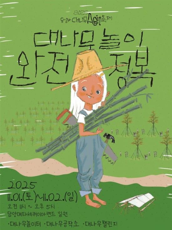 전남 담양군문화재단(이사장 정철원, 이하 재단)은 오는 11월 1~2일 이틀간 메타세쿼이아랜드 일대에서 참여형 문화예술교육축제인 '2025 담양대나무아지트축제 : 대나무놀이X완전정복'을 개최한다고 16일 밝혔다.