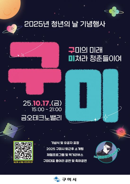 경북 구미시는 10월 17일 금오테크노밸리 중정주차장에서 '2025년 청년의 날 기념행사'를 연다.
