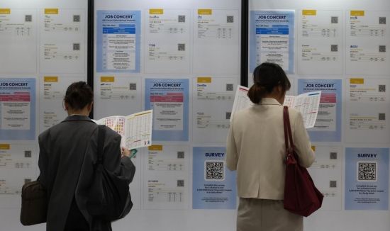 지난 5월 서울 강남구 삼성동 코엑스에서 열린 '2025 글로벌 탤런트 페어'(Global Talent Fair)' 를 찾은 취업 준비생과 외국인 유학생들이 채용공고 게시판을 살펴보고 있다. 조용준 기자
