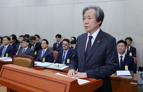 정기석 국민건강보험공단 이사장이 17일 국회 보건복지위에서 열린 2025년도 건강보험공단과 건강보험 심평원에 대한 국정감사에서 업무보고를 하고 있다.