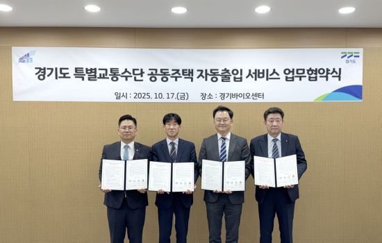 경기교통공사는 17일 경기도, 대한주택관리사협회 경기도회, 전국아파트입주자대표회의연합회 경기도지부와 함께 '장애인콜택시 아파트 자동출입 서비스' 도입을 위한 업무협약을 체결했다.