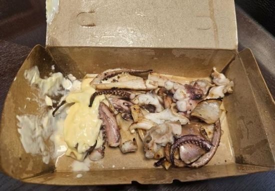 A씨가 공개한 사진에는 작은 종이상자 안에 오징어 다리 몇 개와 마요네즈 소스가 묻어있는 음식이 담겨있었다. 해당 사진을 본 누리꾼들은 "장사하는 사람의 시선에서 봤을 때 한번 오고 말 사람이라는 생각에 저렇게 파는 것", "몸통은 다 먹고 다리 부스러기만 준거냐", "무슨 저런 찌꺼기를 줬나"는 반응과 함께 "사실이 맞냐"라는 의심 글도 확산했다.