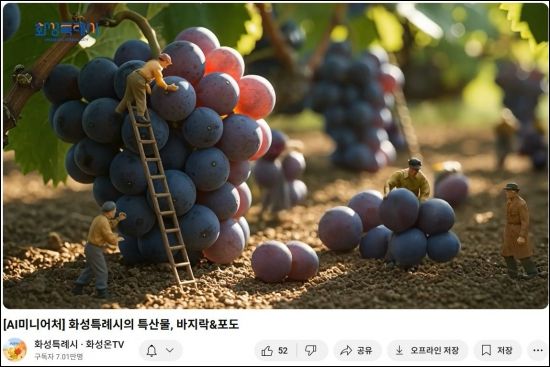 지난달에는 수향미·바지락·송산포도 등 지역의 대표 특산물을 소재로 한 AI 미니어처 영상 시리즈도 공개했다. 영상은 AI가 구현한 섬세하고 아기자기한 비주얼과 감각적인 연출로 짧은 시간 안에 화성의 맛과 정서를 생생하게 담아냈다.