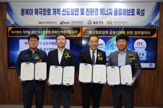 여수광양항만공사(사장 직무대행 황학범, 이하 '공사')는 지난 22일 공사 본사에서 한국석유공사, BS한양, 오일허브코리아여수와 '북극항로 개척 정책과제 공동 이행을 위한 업무협약'을 체결했다고 23일 밝혔다.