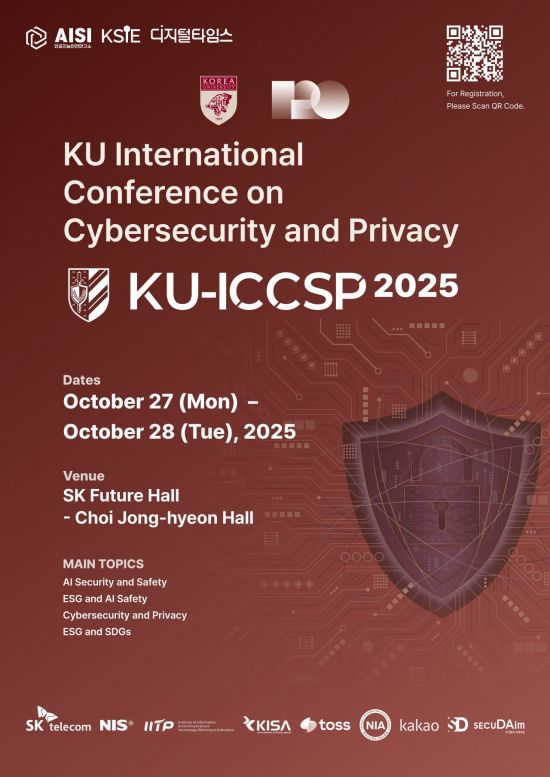 KU-ICCSP 2025는 국내외 주요 대학·연구기관 및 전문가들이 모여 인공지능(AI)과 사이버보안이 사회에 미치는 영향을 조망하고 글로벌 협력체계 구축 및 연구 역량 향상을 위해 마련됐다. 이를 위해 △AI 보안과 안전 △ESG와 AI 안전 △사이버보안 및 프라이버시 △ESG와 지속가능발전목표(SDGs) 등이 핵심 의제로 다뤄질 예정이다.