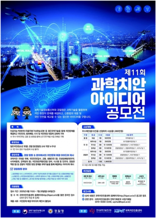 경찰청은 과학기술정보통신부와 공동으로 24일 인천 송도컨벤시아에서 '제11회 과학치안 아이디어 공모전' 시상식을 개최했다.