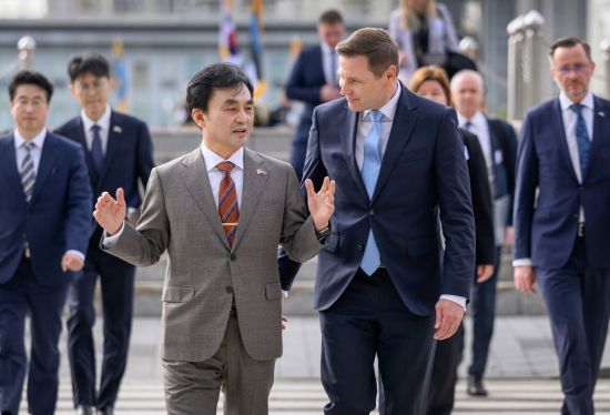 한국-에스토니아 국방부 장관이 다연장로켓 '천무' 획득과 관련한 업무협약(MOU)을 체결했다.