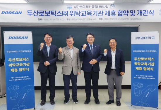 국내 협동로봇 분야 1위 기업인 두산로보틱스는 협동로봇 기술의 산업 확산과 전문 인력 양성을 위해 국립부경대를 공식 위탁교육기관으로 지정한 데 이어 이날 협약을 했다.