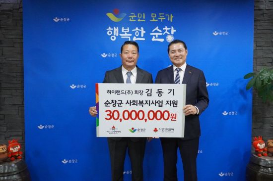 광주사회복지공동모금회(이하 광주사랑의열매)는 하이랜드㈜ 김동기 회장이 순창군 사회복지사업 지원을 위한 기부금 3,000만원을 전달했다고 24일 밝혔다.