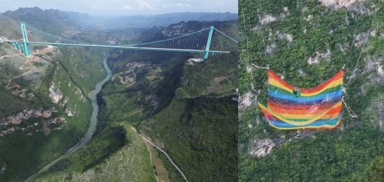 최근 중국 사회관계망서비스(SNS)에서는 구이저우성 화장협곡대교에서 줄 없는 번지점프를 시험하는 영상이 확산했다. 해당 영상에는 다리 위에서 던진 모래주머니가 수십 미터 아래 설치된 안전망에 떨어지는 모습이 담겨 있었다.