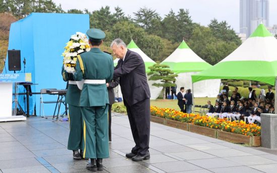 이중근 대한노인회장 겸 부영그룹 회장이 유엔 창설 80주년을 맞아 열린 기념식에서 유엔데이 공휴일 재지정을 재차 촉구했다.